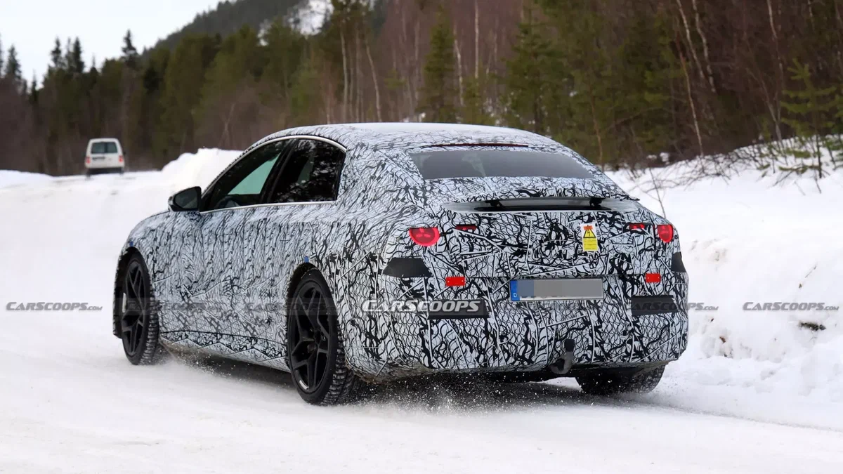 Належність електромобіля до лінійки AMG видають одразу кілька ознак. Це, наприклад, великі гальмівні диски у поєднанні з колесами специфічного дизайну, а також активний спойлер на компактній кришці багажника. Електричну природу прототипу підтверджують відповідні жовті наклейки.