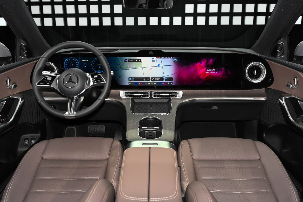 Інтер’єр запозичений у «короткої» версії: тут встановлено гігантський екран MBUX діагоналлю 39,1 дюйма та проєкційний дисплей. У списку оснащення — передні сидіння з підігрівом, вентиляцією і масажем, бездротова зарядка для смартфонів та аудіосистема Burmester.