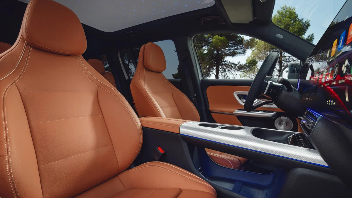 Для інтер’єру передбачено опціональний екран Superscreen із трьома дисплеями діагоналлю 10,25 та 14 дюймів (центральний та пасажирський). Медіасистема на операційній системі MB.OS оснащена елементами штучного інтелекту. Панорамний дах включений у стандартну комплектацію, але з часом Mercedes-Benz запропонує для GLB дах Sky Control із регульованою прозорістю та ефектом «зоряного неба».