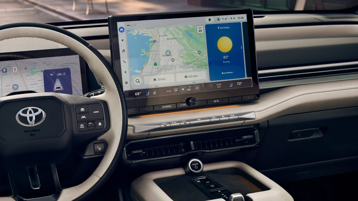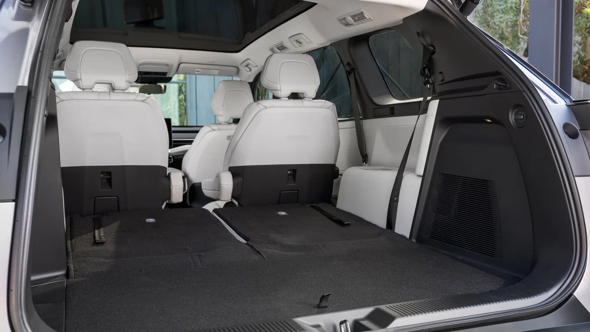 У салоні Highlander три ряди сидінь. Із оснащення заявлені 14-дюймовий центральний екран і 12,3-дюймова цифрова панель приладів, зарядні роз’єми на кожному ряду, панорамний дах (найбільший серед усіх моделей бренду) та фірмовий комплекс систем безпеки Toyota Safety Sense четвертого покоління з адаптивним круїз-контролем. За доплату запропонують аудіосистему JBL Premium з 11 динаміками, сабвуфером і підсилювачем, вентиляцію сидінь і 22-дюймові диски замість 19-дюймових.