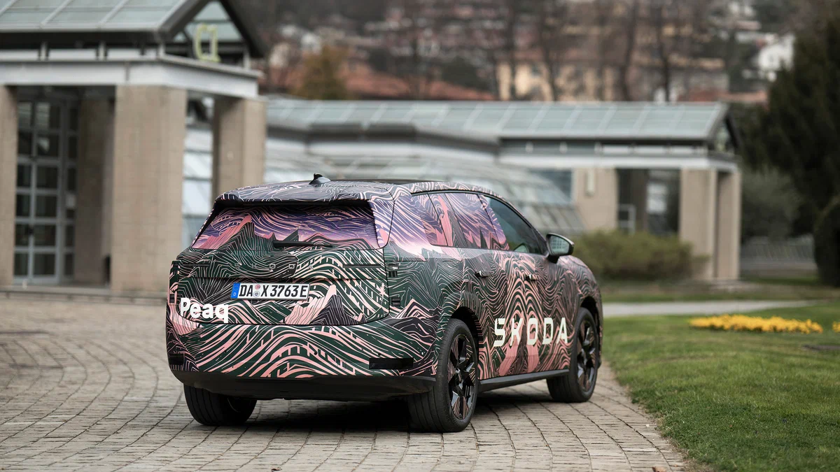 За довжини 4874 міліметри Skoda Peak має колісну базу 2965 міліметрів (плюс 116 і 174 міліметри порівняно з Kodiaq). Це дозволить компанії продавати кросовер із п’яти- або семимісним салоном, при цьому в першому випадку об’єм багажника досягає 1010 літрів — рекорд серед нинішніх Skoda. У трирядної версії вантажний відсік зменшується до базових 299 літрів. Передбачені колеса розмірністю від 19 до 21 дюйма. Топова версія отримає матричну світлотехніку, а втоплені дверні ручки передбачені для всіх варіантів електромобіля.