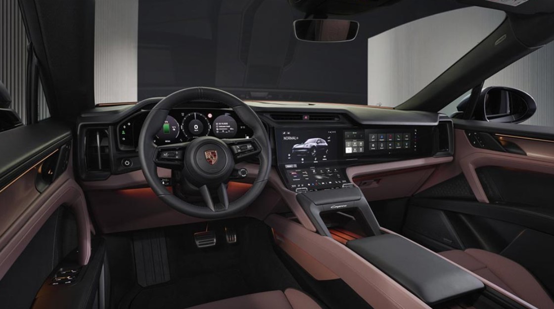 Дизайн кузова з безрамковими дверима в електро-Cayenne повністю новий, як і салон. У ньому з’явилися вигнуті дисплеї панелі приладів та мультимедійної системи, а також окремий тачскрин для переднього пасажира. Марка називає це «інтер’єром майбутнього» й планує впровадити подібні рішення в інших моделях.