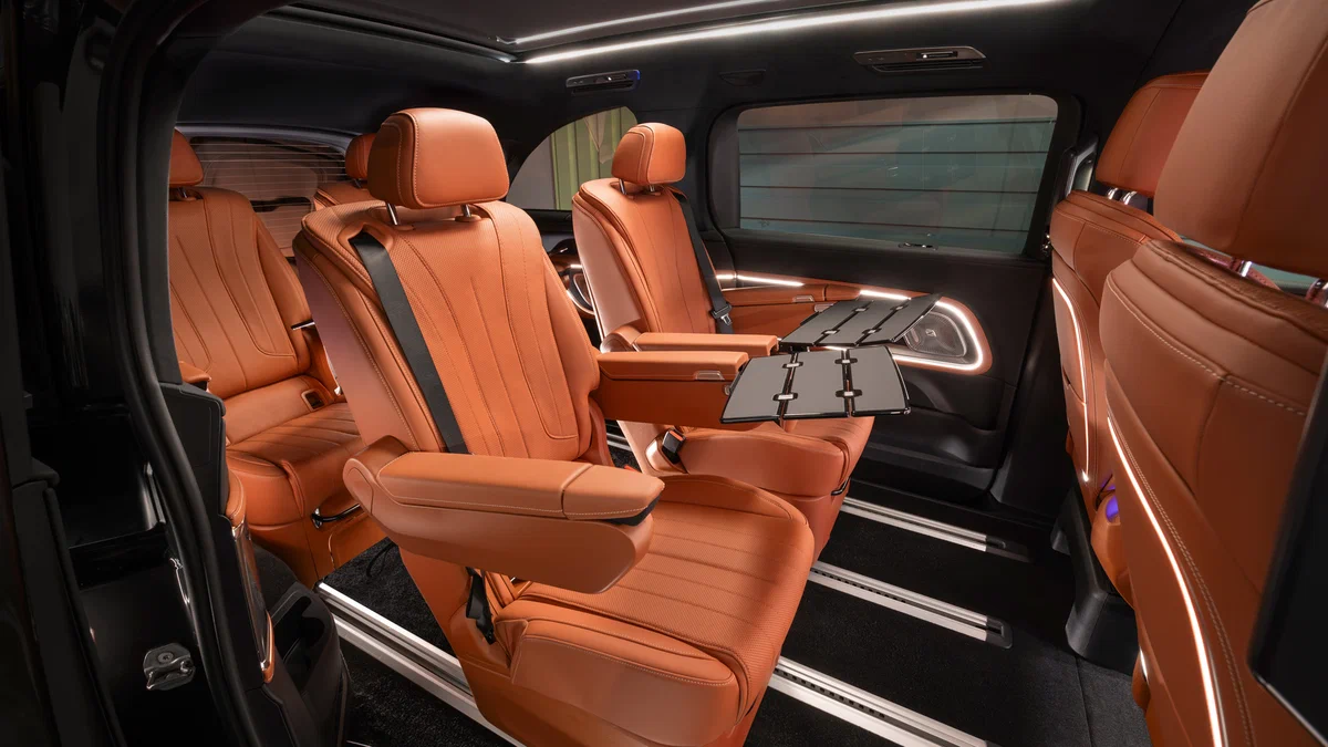 Для другої половини салону VLE компанія запропонувала відразу кілька варіантів як компонування, так і самих крісел. Вен, що вміщує до восьми осіб, може бути оснащений як суцільними диванами другого і третього рядів, так і роздільними сидіннями, яких передбачено три види. Стандартні мають механічні регулювання, середня категорія — електричні, а топові крісла Grand Comfort Seat укомплектовані масажем, бездротовими зарядками та висувними отоманками.