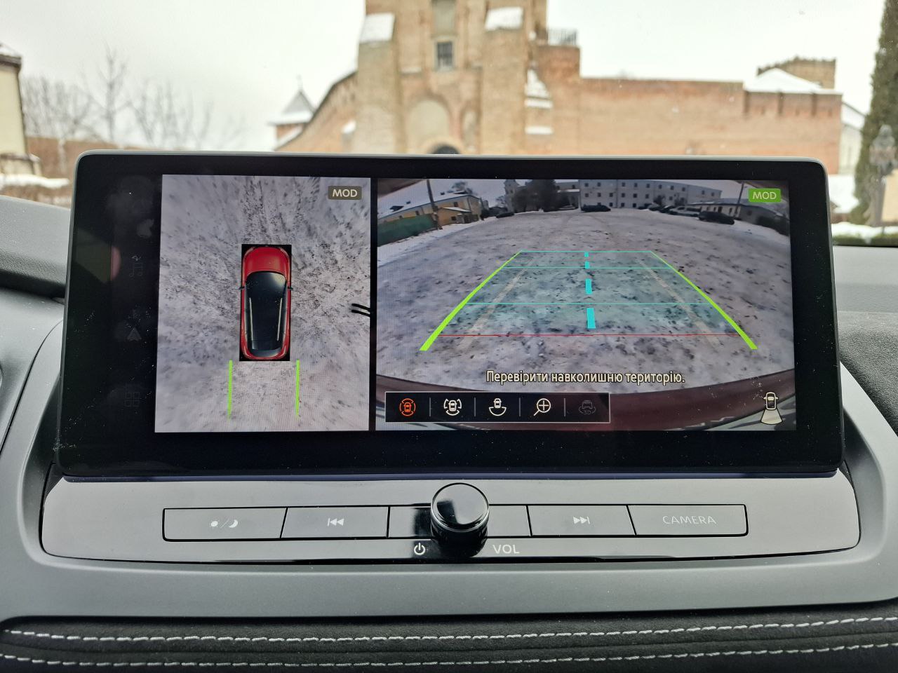 Перед водієм — 12,3-дюймова цифрова панель приладів. Поруч — мультимедіа 12,3” на базі Google Android. Система працює швидко, логічно і без підвисань. Бездротові Apple CarPlay та Android Auto підключаються без проблем. Є проекція на лобове скло, і вона доволі інформативна і водночас не нав’язлива. Камери кругового огляду дають чітку картинку, мають функцію «прозорий капот» та зберігають паркомісця. Це не еталон преміум-класу, але якість зображення впевнено добра.