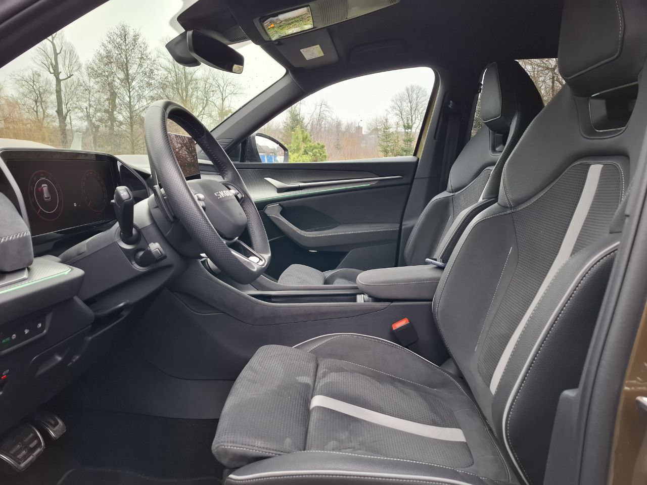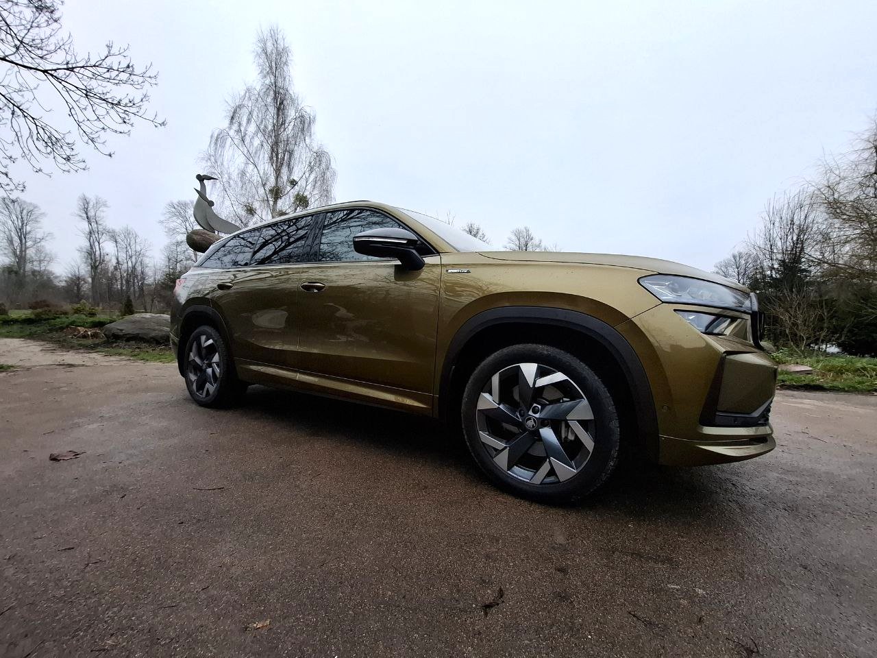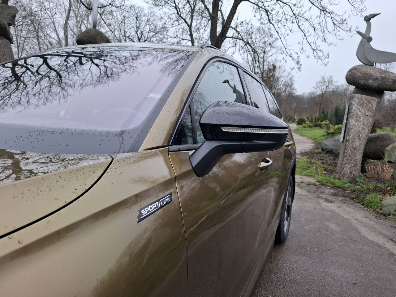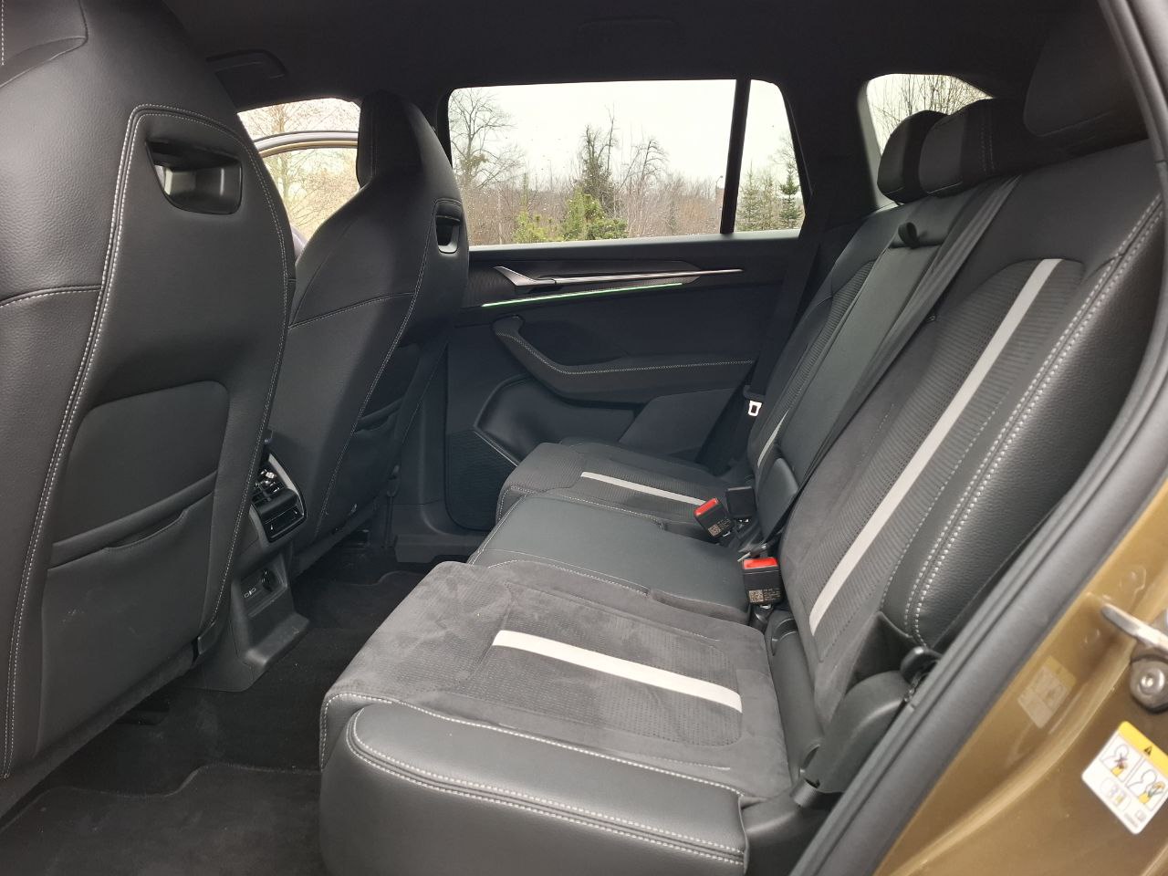 Задня частина стала візуально ширшою завдяки тонким ліхтарям, з’єднаним світловою смугою. У Sportline додається більше глянцево-чорних акцентів, інші бампери та 19-дюймові колеса, які добре заповнюють колісні арки. У підсумку Kodiaq виглядає стримано, але вже не нудно — це великий кросовер, який не губиться в потоці.