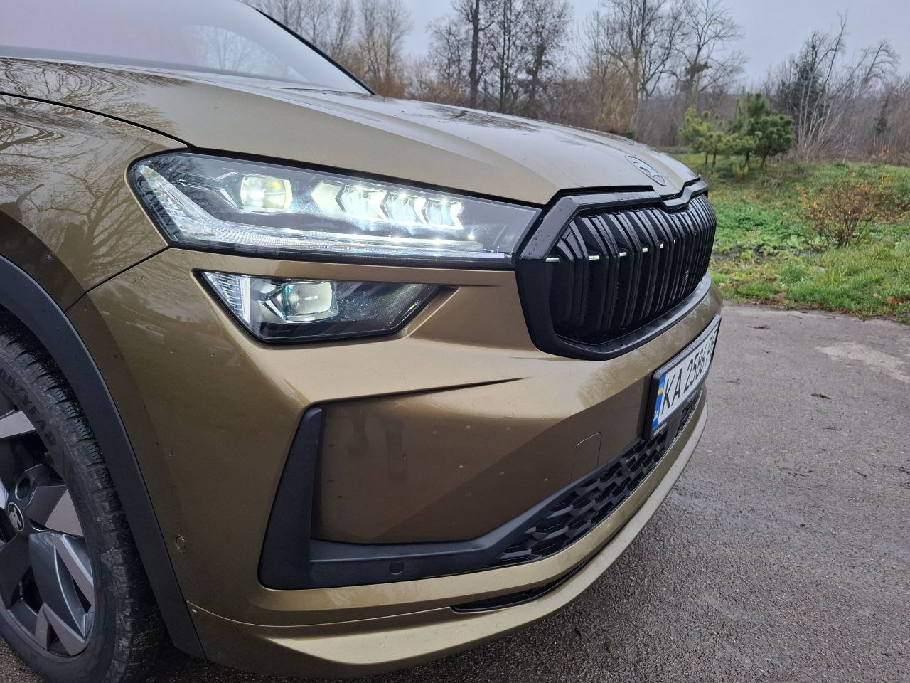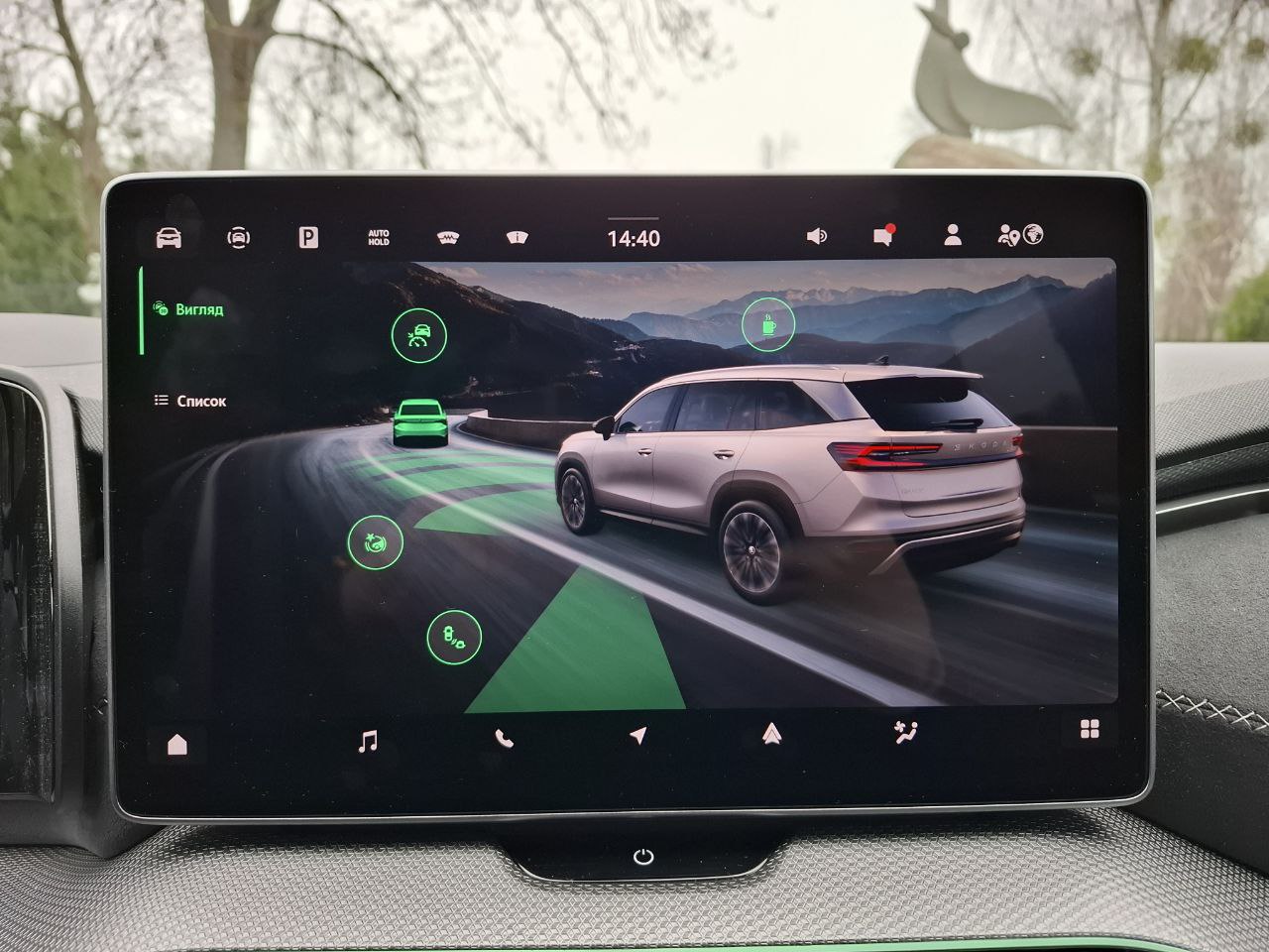 Кермо точне, з приємним зусиллям на швидкості, а шумоізоляція — на високому рівні: на трасі в салоні спокійно і тихо. У місті, попри свої розміри, Kodiaq не сприймається громіздким.