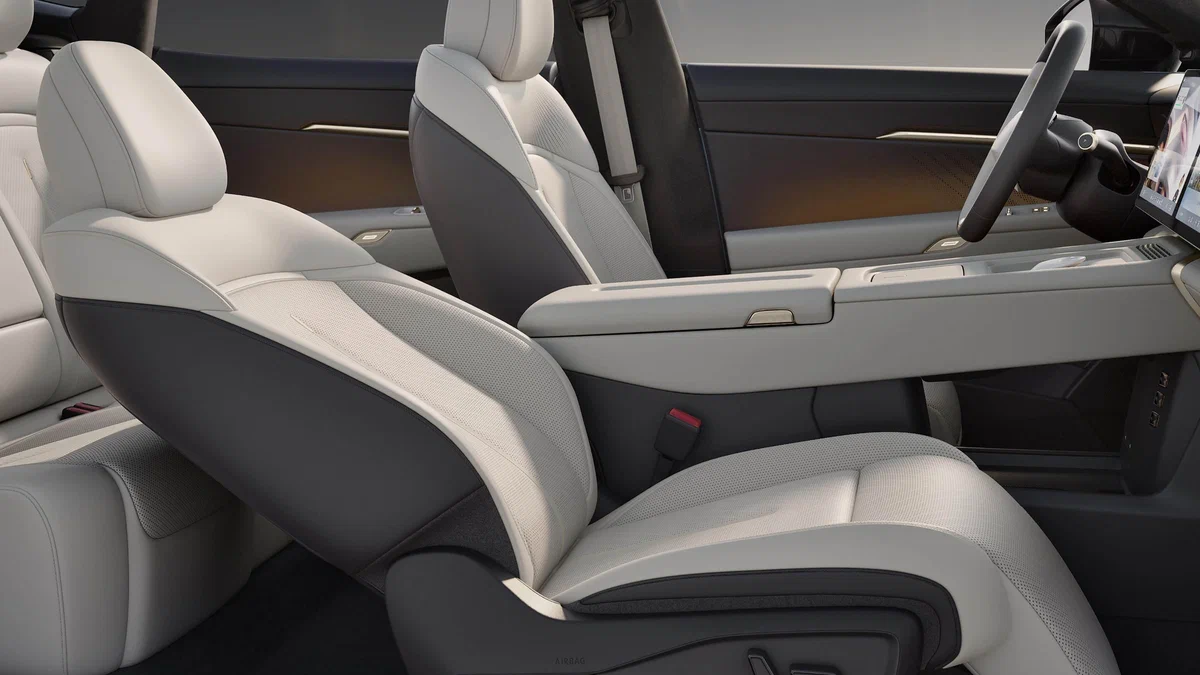 У передній частині салону кросовера встановлено одразу три великі екрани. Цифрова панель приладів має діагональ 10,25 дюйма, а центральний і пасажирський дисплеї з роздільною здатністю 2,4К — по 14,96 дюйма. Фізичні кнопки фактично залишилися лише на дверних панелях і спицях кутчастого керма.